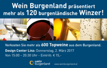 Präsentation der Burgenländischen Herkunftsweine in Linz 2. 3. 2017 Design Center Linz Infos unter:www.weinburgenland.at <- back